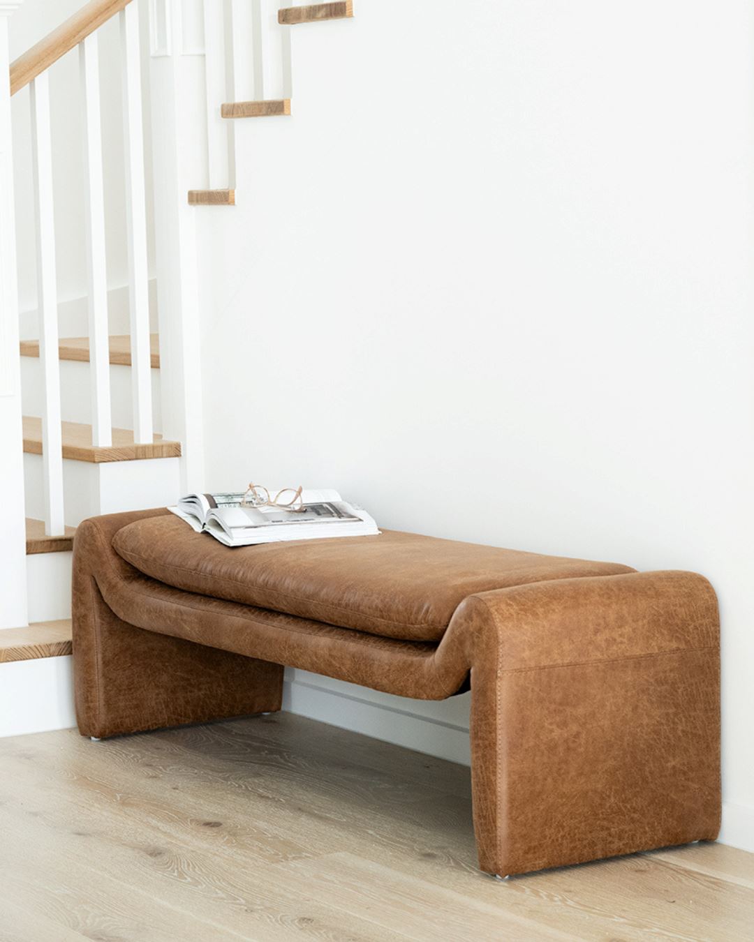 Create a cohesive and stylish look in your home with the Amery Bench in Cognac Leather, a timeless addition to any setting.