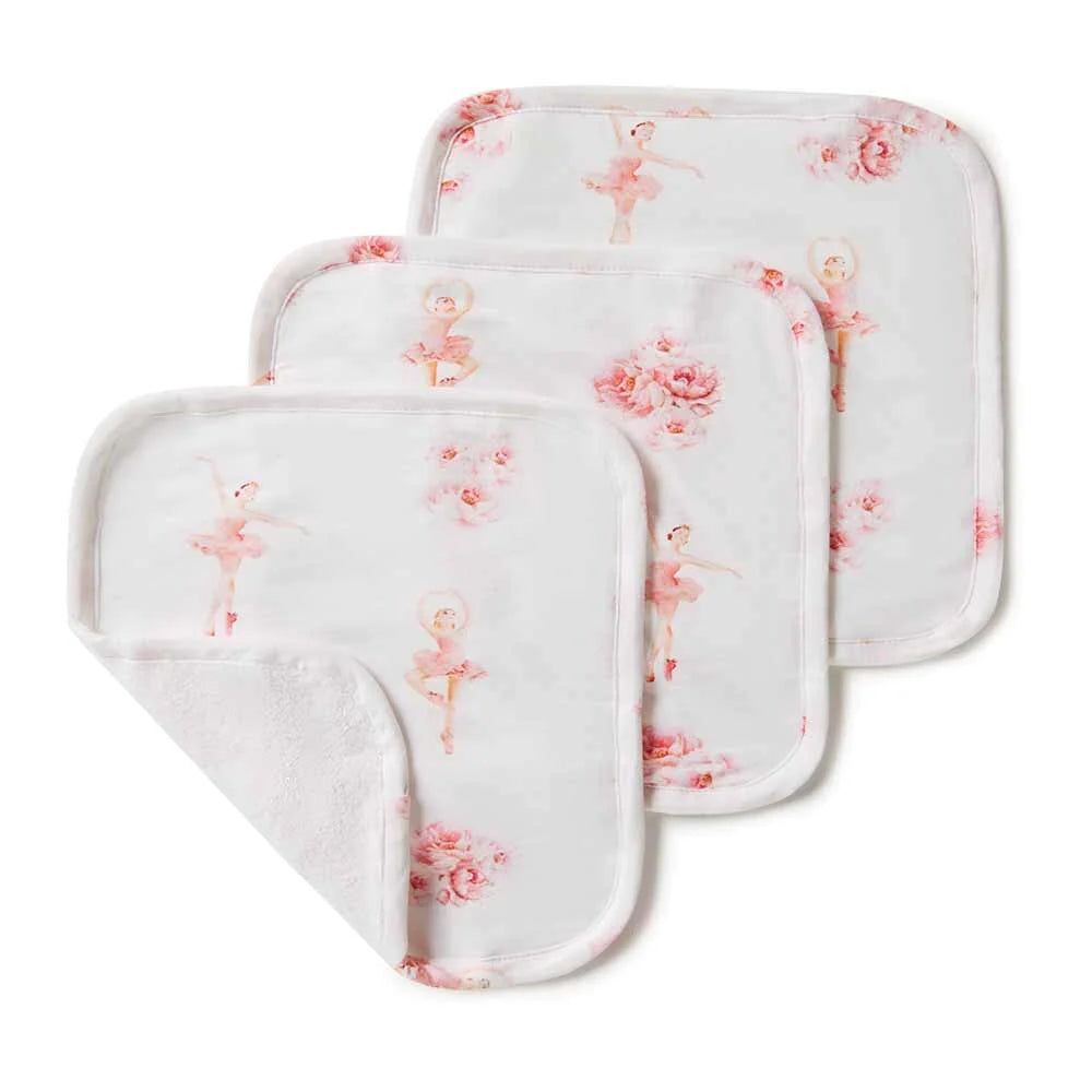 Ballerina Wash Cloths | 3 Pack Organic Cotton Baby & Face Cloths