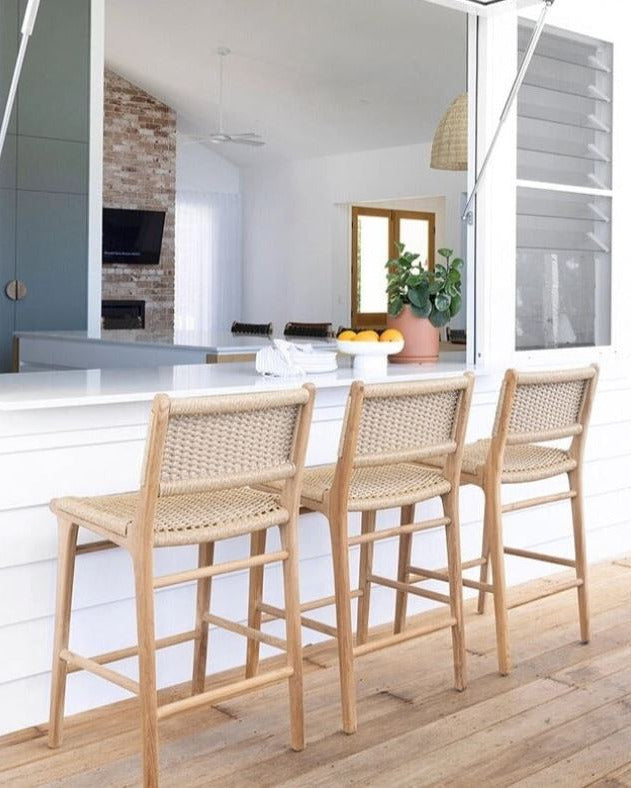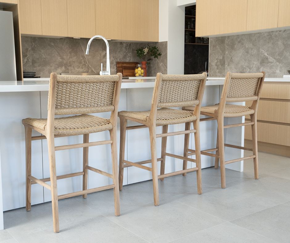 The seat features Viro cord, a stylish and durable material, suitable for indoor or outdoor undercover spaces. The Sand finish enhances the stool’s earthy, versatile appeal, perfectly complementing farmhouse, coastal, or Mediterranean-inspired interiors.