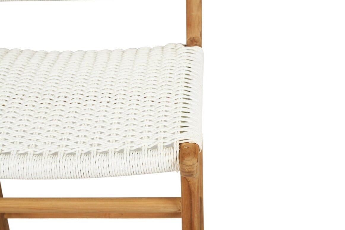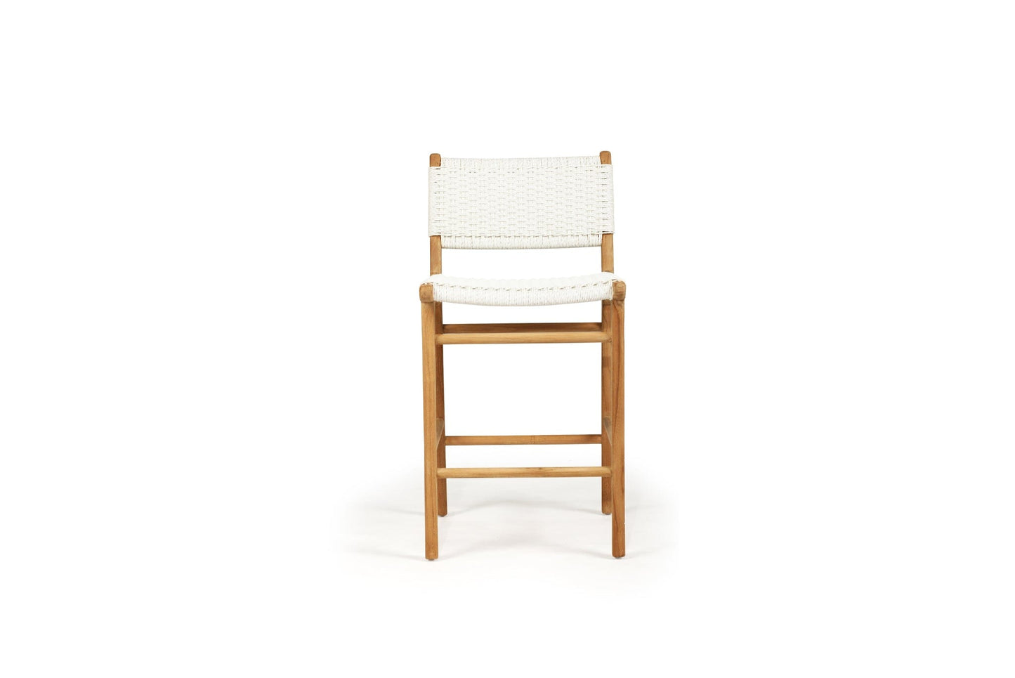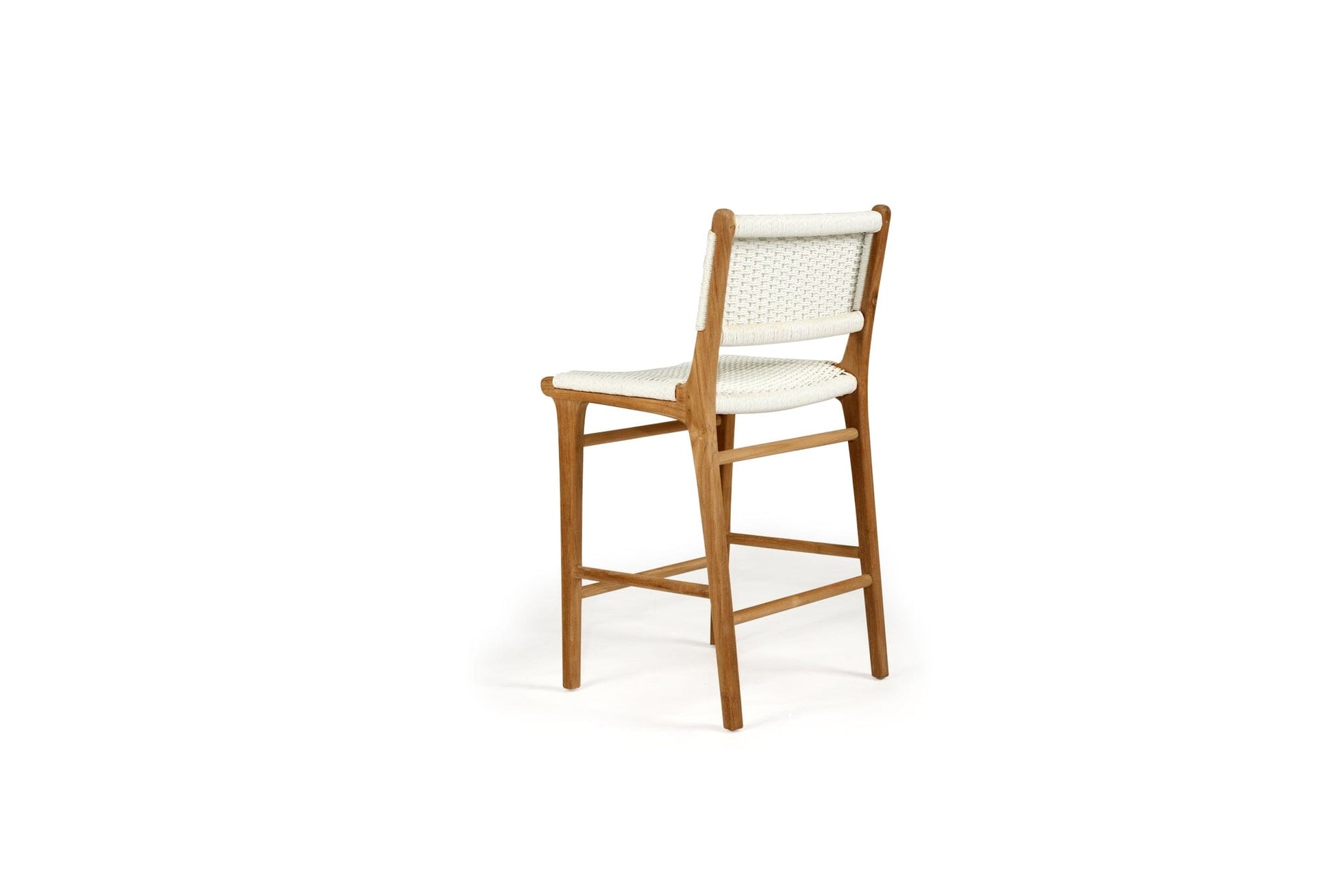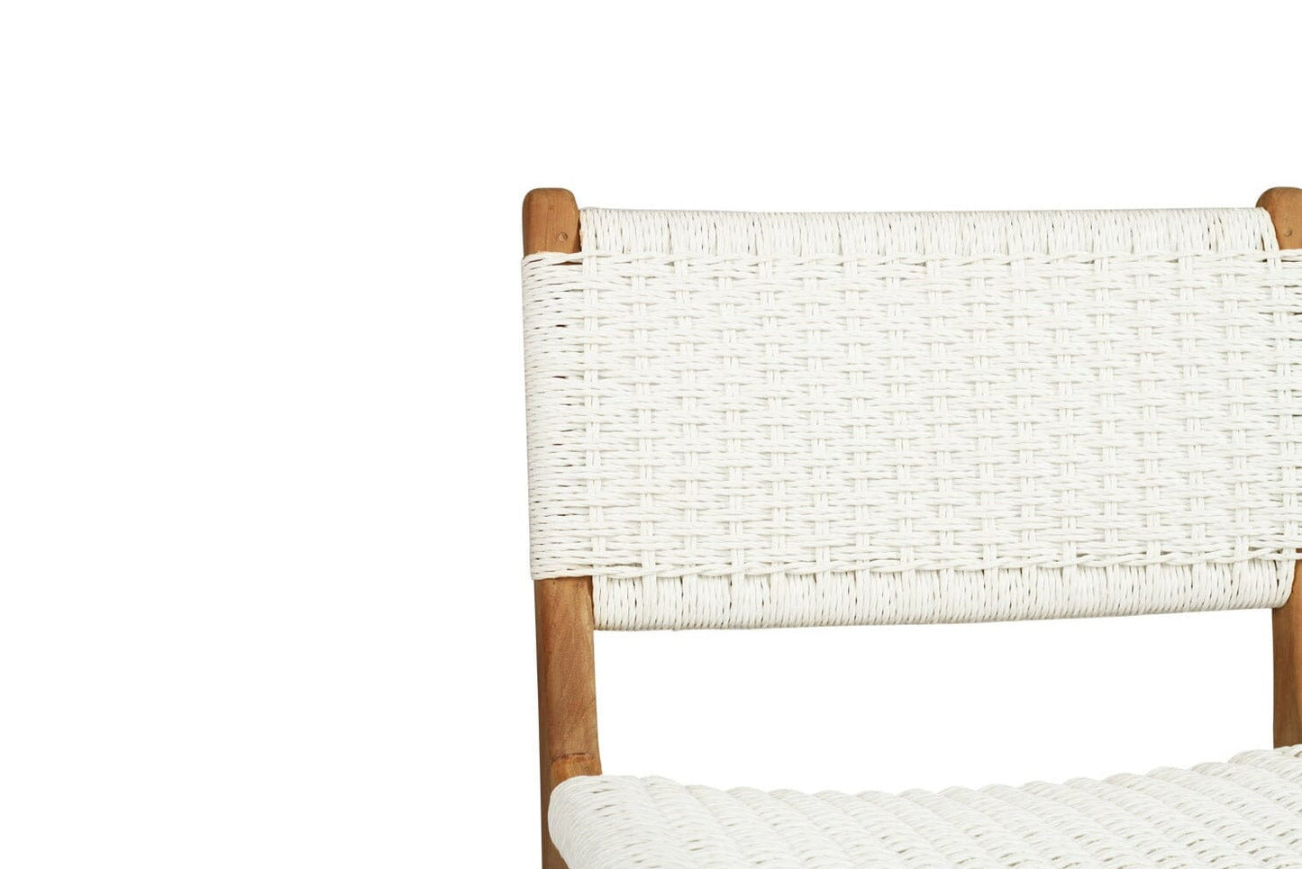 Crafted from solid teak for lasting durability, the seat features Viro cord—a resilient material designed for indoor use or outdoor undercover settings. The stool’s sleek white finish enhances its versatility, seamlessly blending with modern, coastal, or Scandinavian aesthetics.