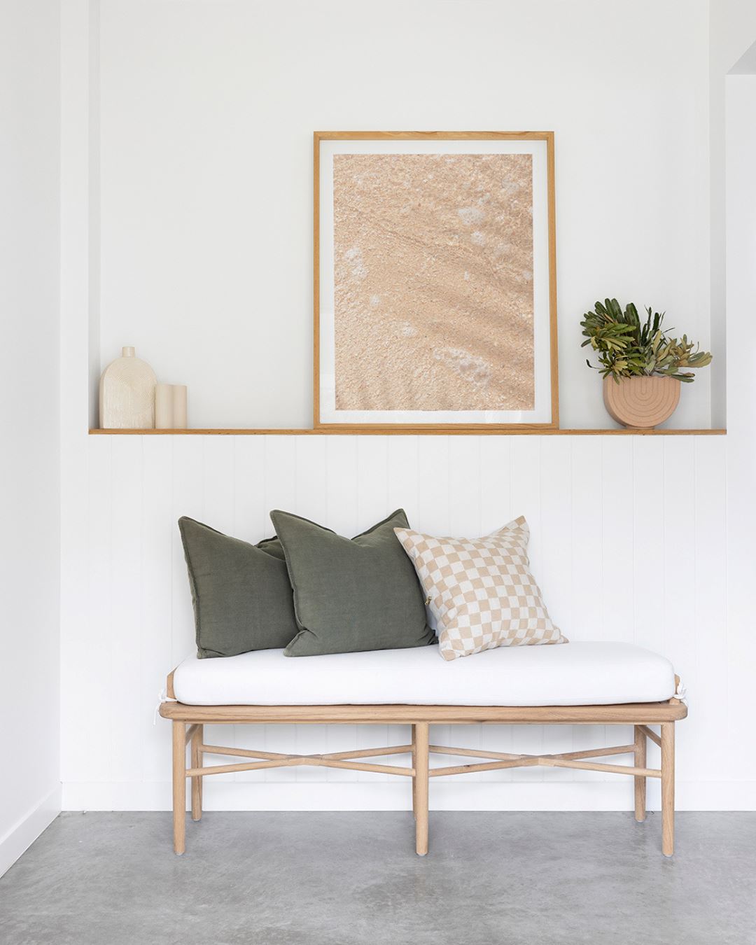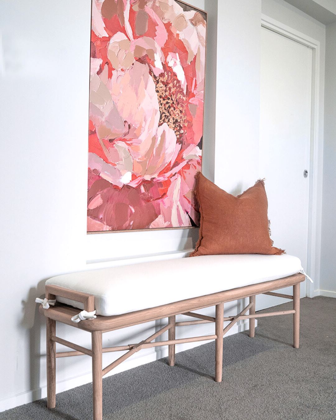 Designed with a modern coastal and Scandinavian influence, the Malie adds effortless style whether placed in a hallway, entryway, living space, or at the foot of the bed.