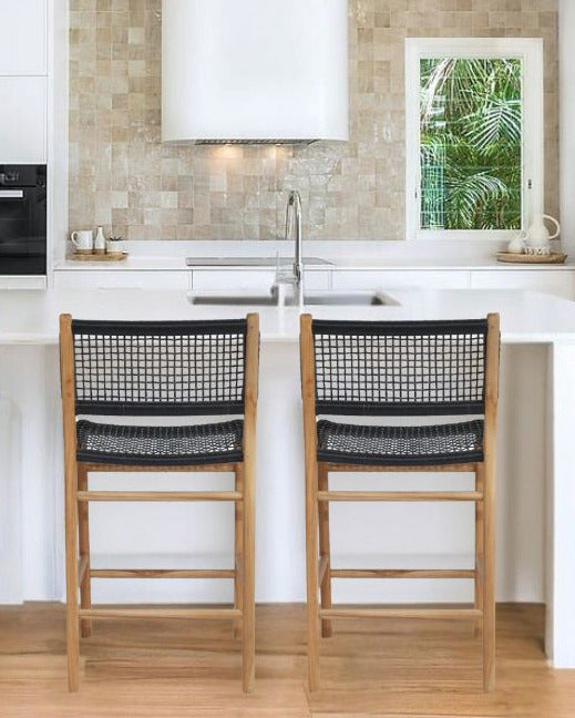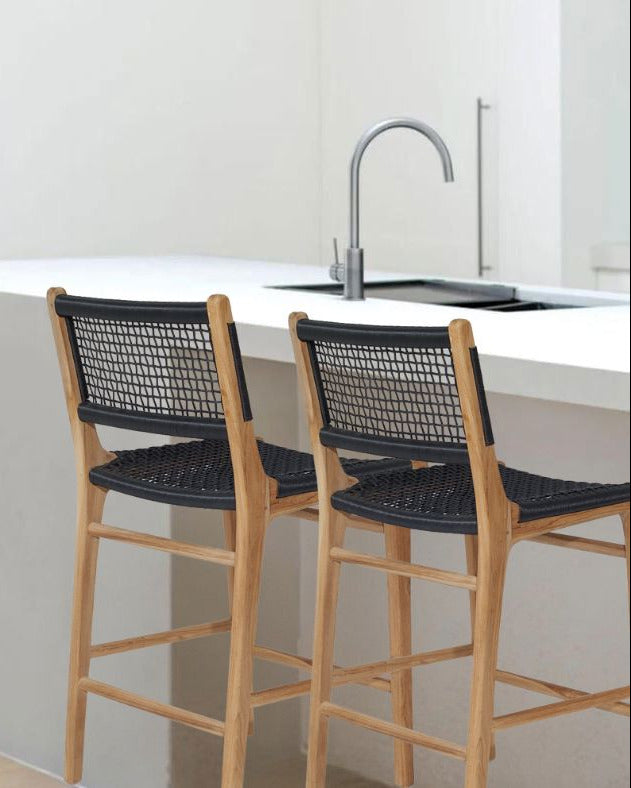 Elevate your indoor or outdoor seating with the Noosa Counter/Bar Stool in Black, a seamless fusion of classic craftsmanship and modern resilience. Designed for both style and functionality, this stool features a solid teak frame and a handwoven Viro outdoor cord seat, ensuring long-lasting durability in any environment.