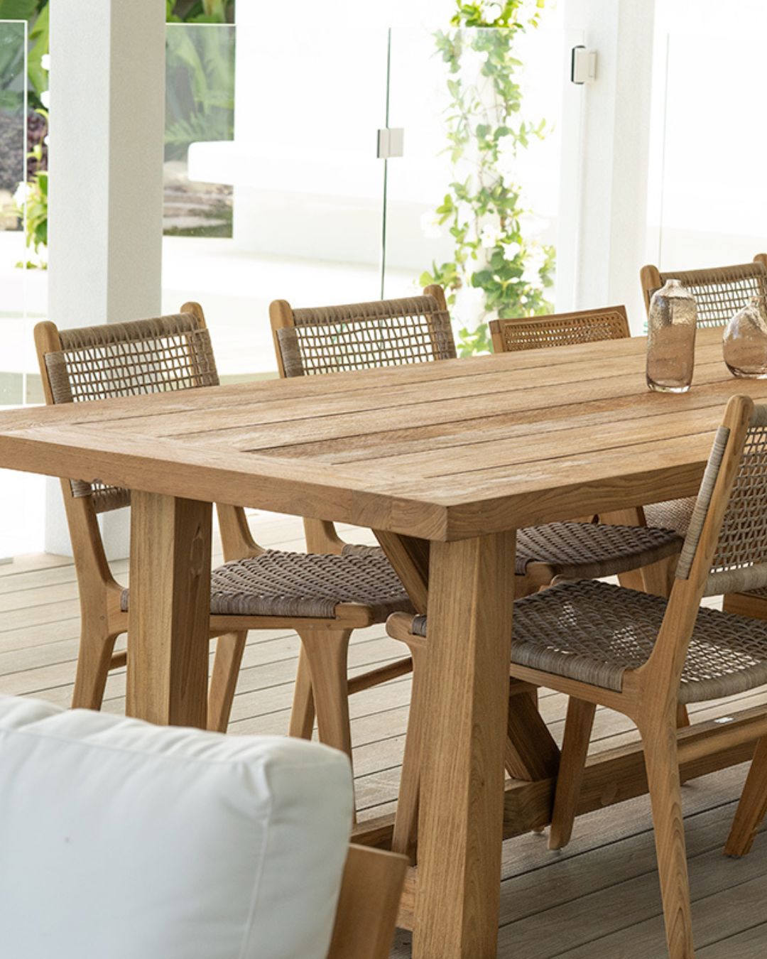 - Made from solid teak with a woven Viro cord seat for supreme comfort.