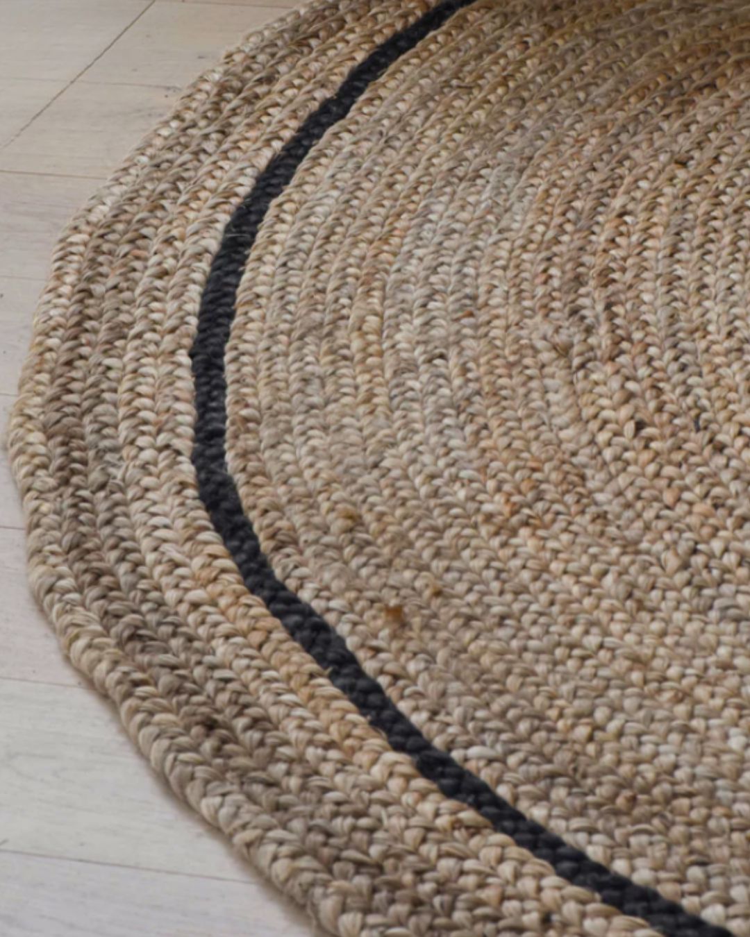 Organic Round Jute Rug – Natural with Heritage Black Stripe
