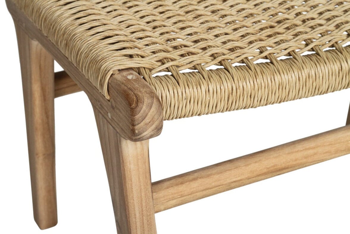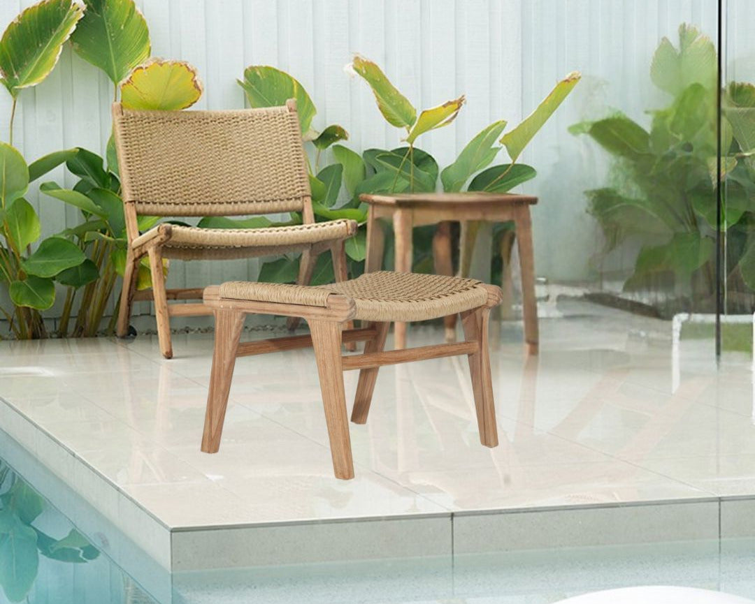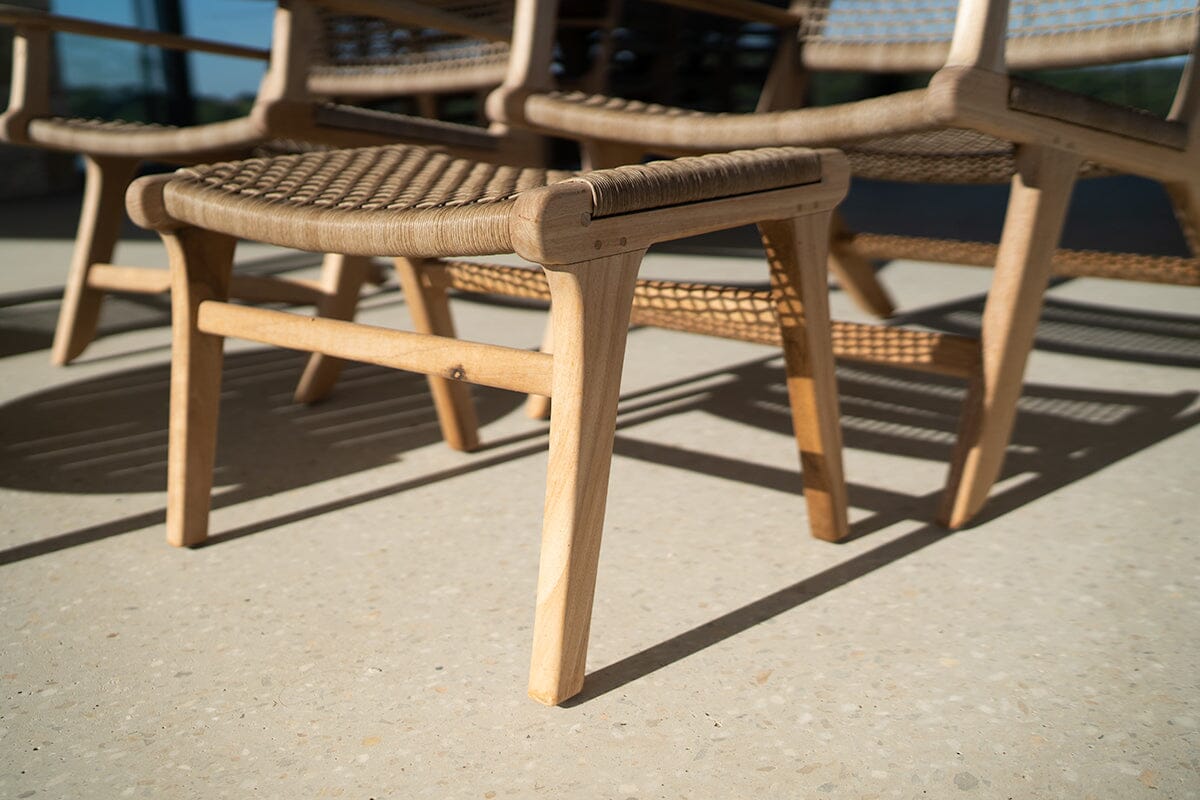 Crafted from solid teak with a highly sanded finish, this piece is as durable as it is beautiful. The woven Viro waterproof cord ensures lasting comfort, making it ideal for full outdoor use, undercover patios, or indoor spaces. Featuring nylon feet pads on each leg, this ottoman is designed to protect your flooring while offering a sturdy, stylish addition to your space.