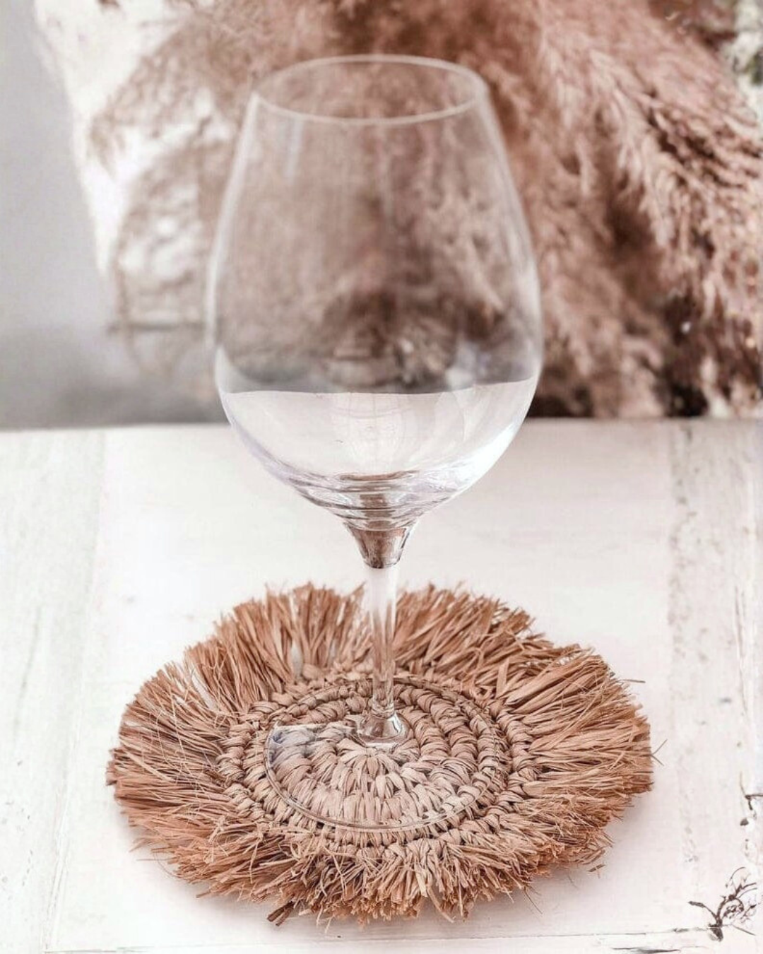 Sunset Natural Raffia Coaster with Fringe