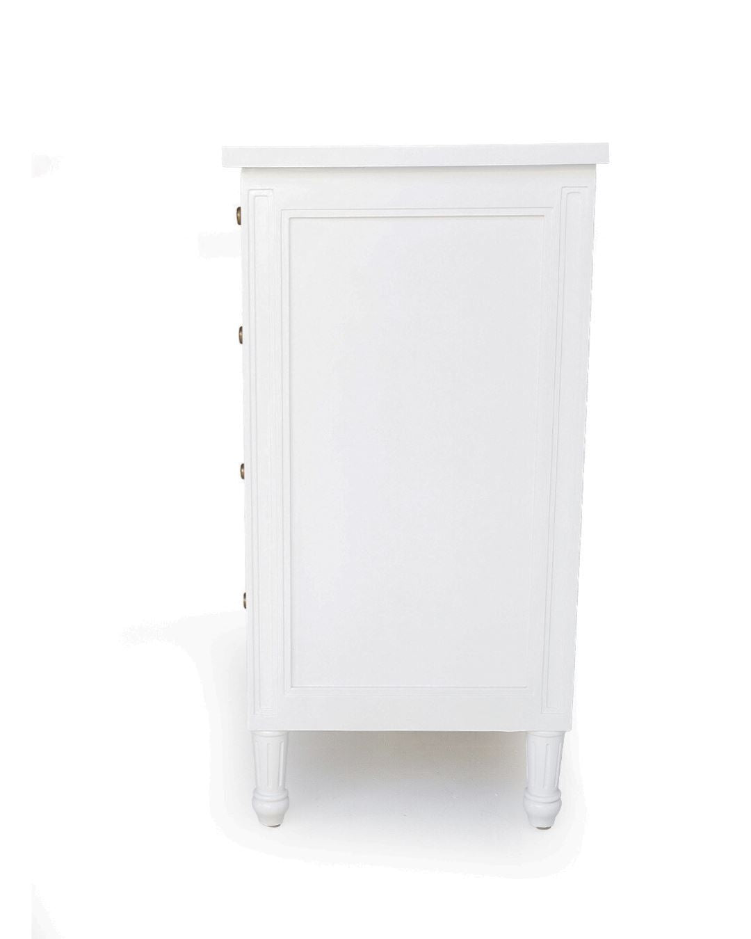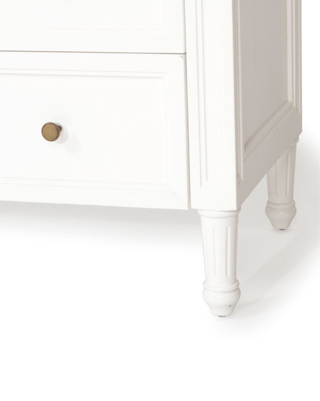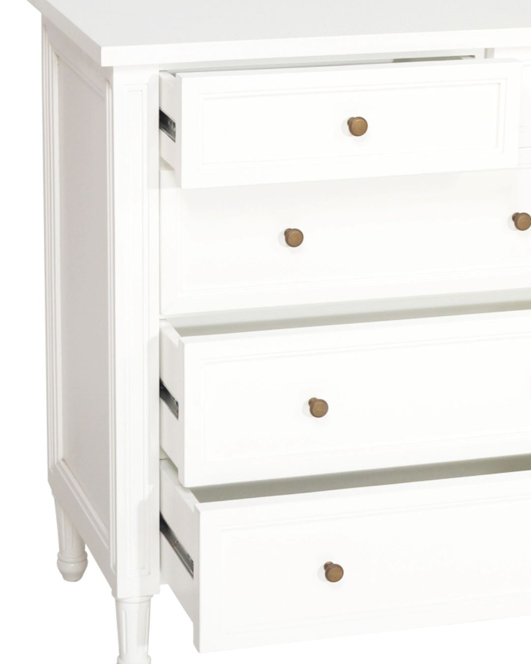 Elevate your bedroom with the White Cayman Coastal Hamptons 9-Drawer Bedroom Dresser. Designed for both style and practicality, this solid mahogany dresser features fluted legs and a semi-gloss white finish, creating a statement piece that exudes coastal sophistication. Its spacious design provides plenty of storage, making it as functional as it is beautiful.
